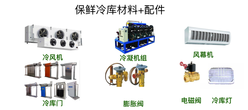 庫體輔料包含:硅膠、角鋁、鋼筋混凝土、吊梁絲桿蘑菇頭、單開平移門、風(fēng)幕機(jī)等。 制冷部分:比澤爾冷凝機(jī)組、谷輪冷凝機(jī)組、冷風(fēng)機(jī)、熱力膨脹閥、電磁閥、供液管路、吸氣管路、管路保溫等,其中制冷機(jī)組質(zhì)保2年。 配電及照明部分:微電腦數(shù)顯控制箱、防潮照明燈具、動力線路及橋架、信號控制線、化霜線、下水管道、溫度傳感器、安裝輔料等。